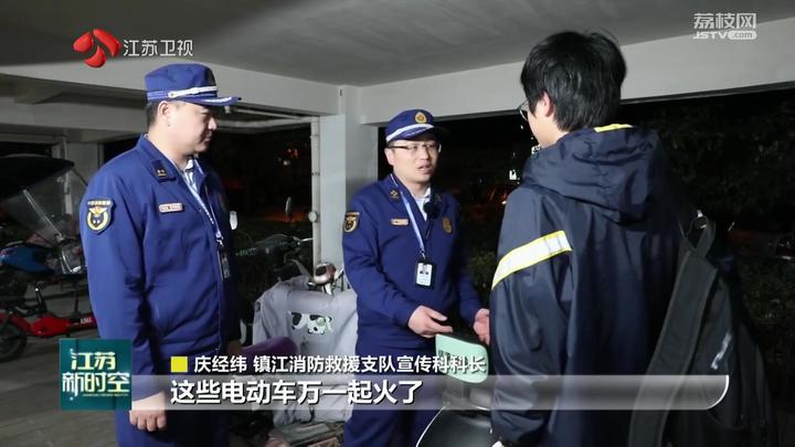 镇江消防救援支队宣传科科长庆经纬现场指出,电动车停在这个地方,万一起火了,就会烧起来,温度达到一千两百摄氏度,周围的温度可能达到六七百摄氏度,会引燃其他电动车。